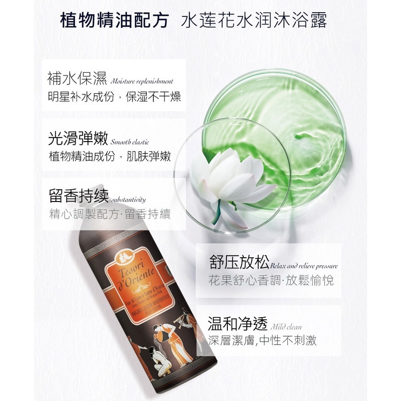 意大利進口東方寶石香氛沐浴乳 清爽不油膩抗痘男女 東方寶石沐浴乳500ml 精油保濕沐浴乳 清爽美背 水蓮花香 龍花
