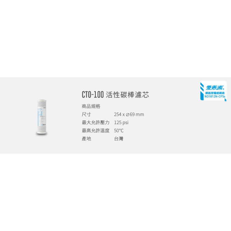 愛惠浦 10英吋前置CTO活性碳棒濾芯4支_CTO-100 (大巨光)