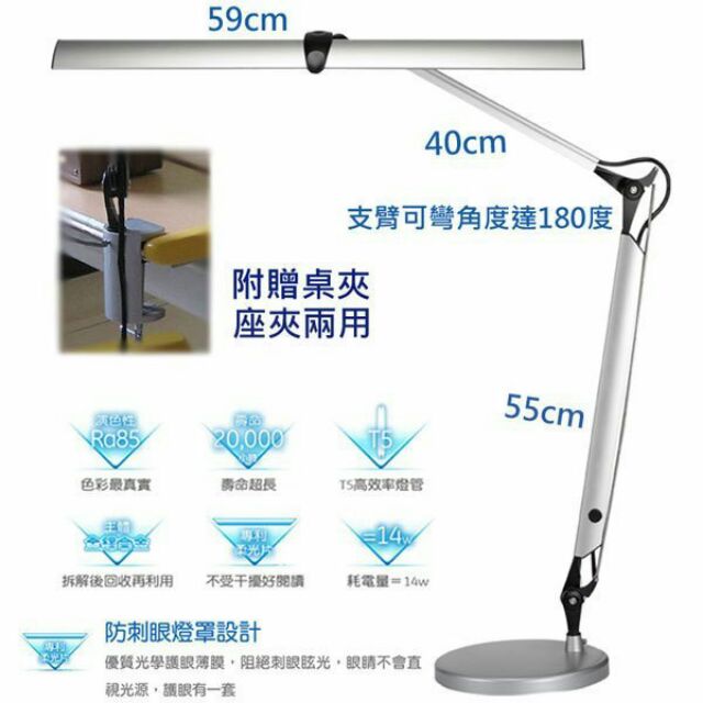 愛迪生T5檯燈 T5雙臂檯燈 TF3136 T5-14W燈管奇異檯燈 T5歐洲燈管14W T5荷蘭燈管 奇異愛迪生檯燈
