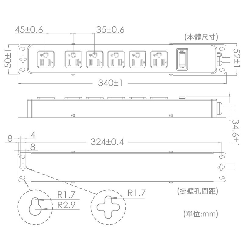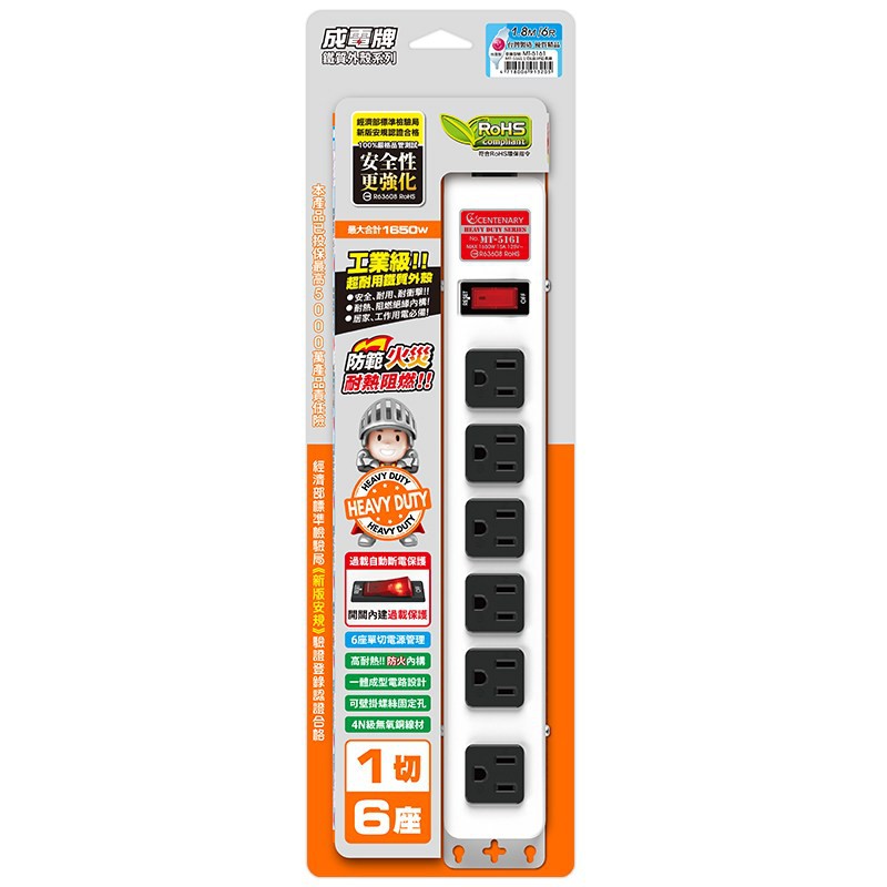 成電牌 鐵殼系列3P延長線1切6座(MT-5161)
