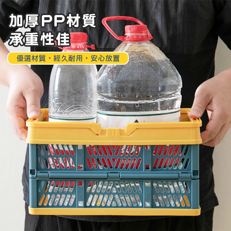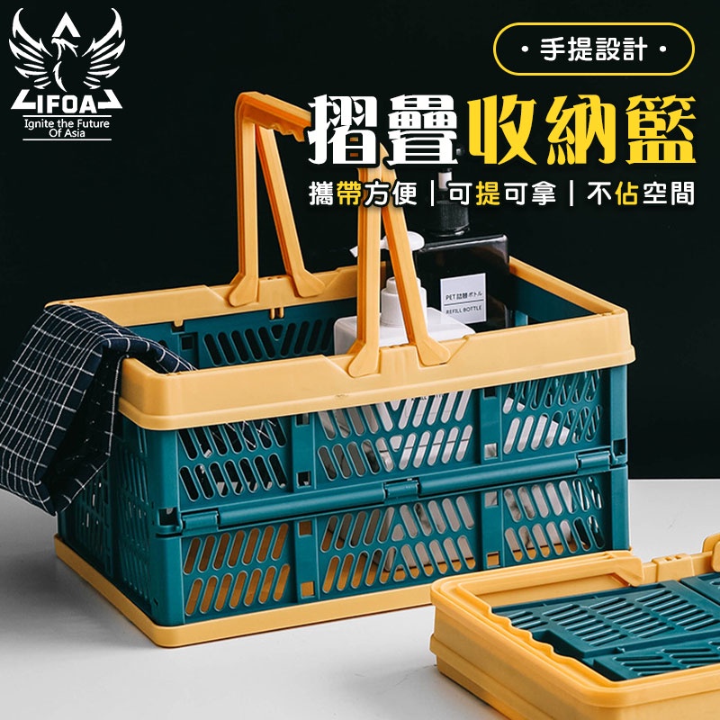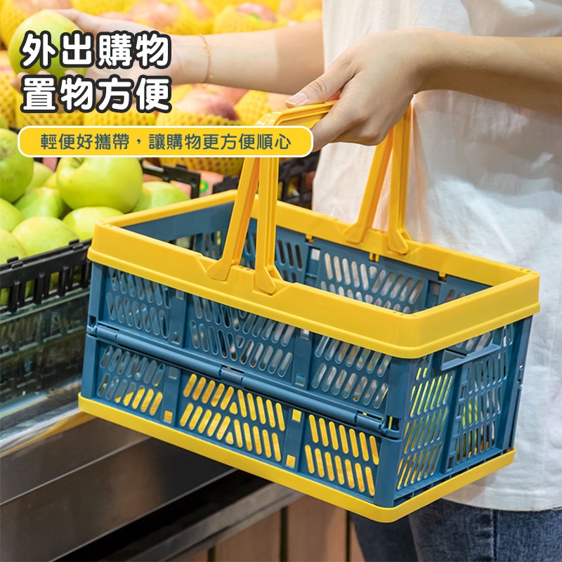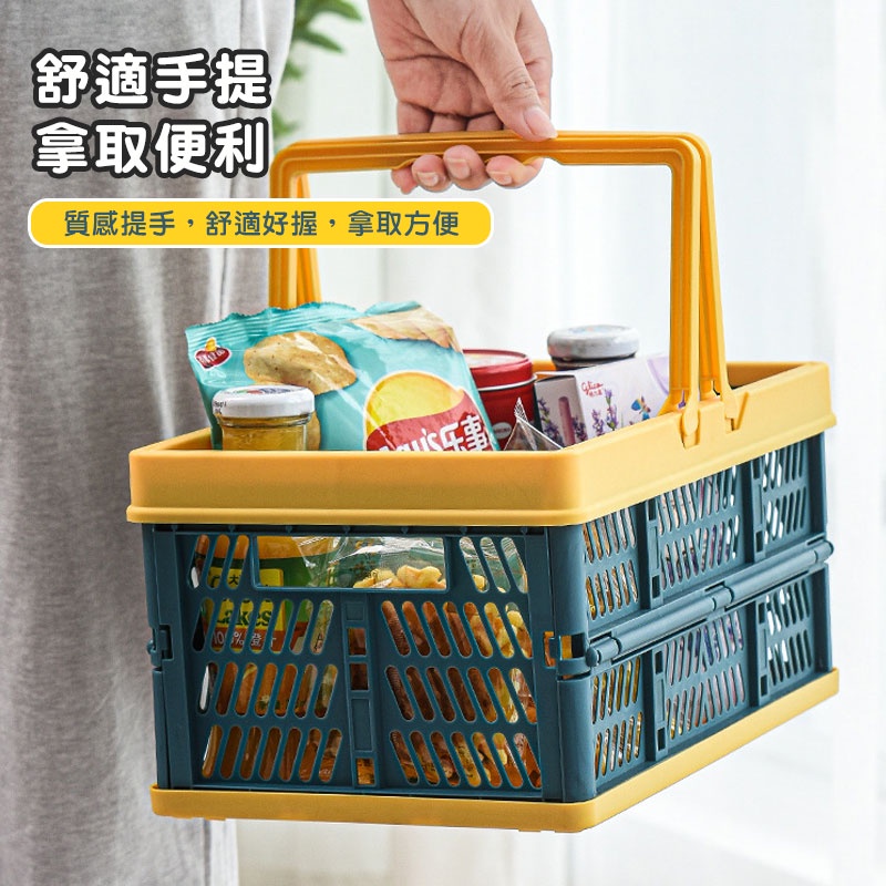 手提摺疊收納籃【00999】摺疊購物籃 購物籃 戶外野餐露營籃 摺疊提籃 手提籃 摺疊收納籃 車用收納籃
