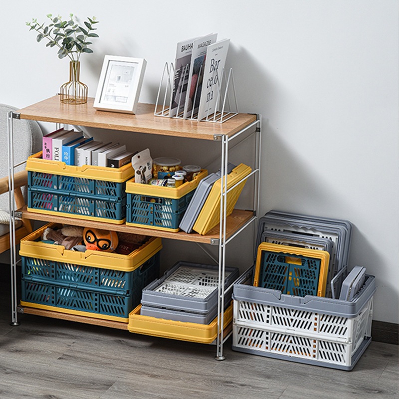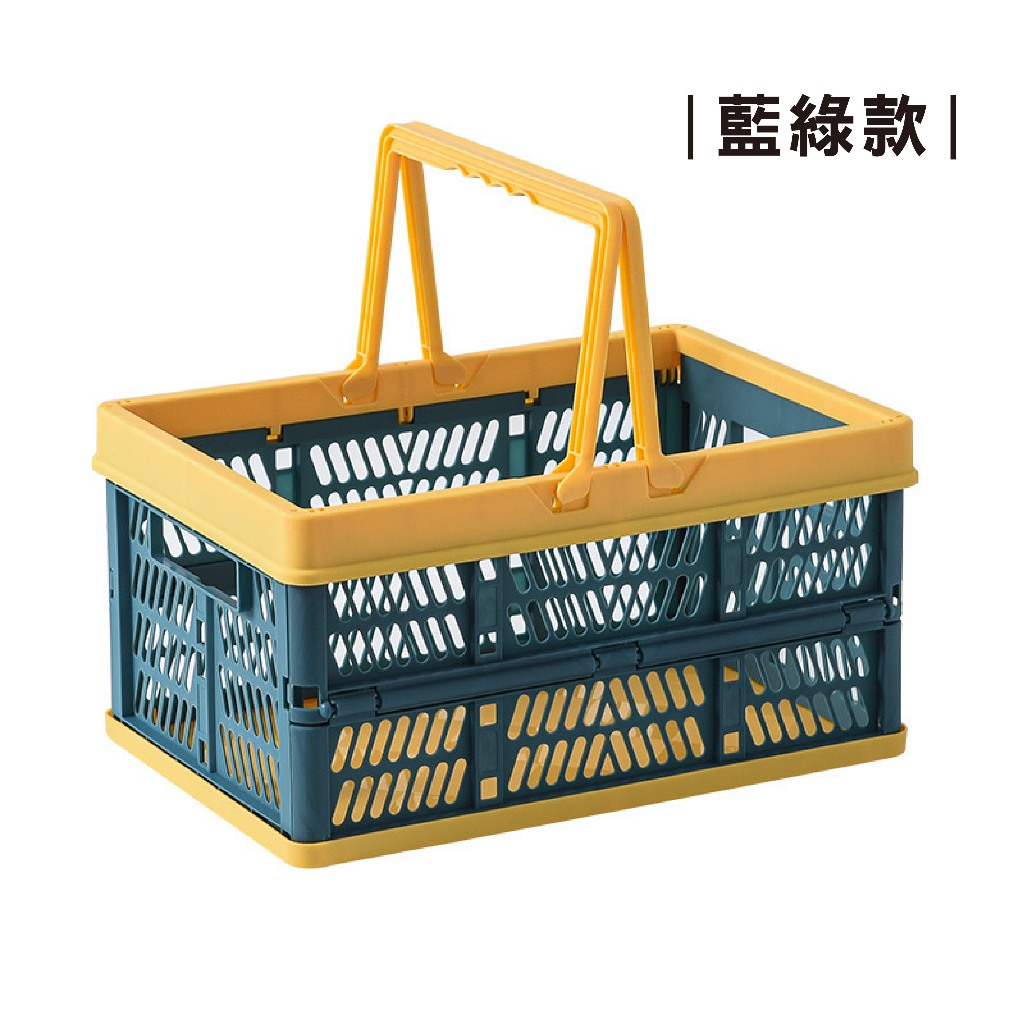 手提摺疊收納籃 折疊置物籃 北歐風手提籃 摺疊 戶外野餐籃 多功能收納 拼色摺疊收納籃 購物籃