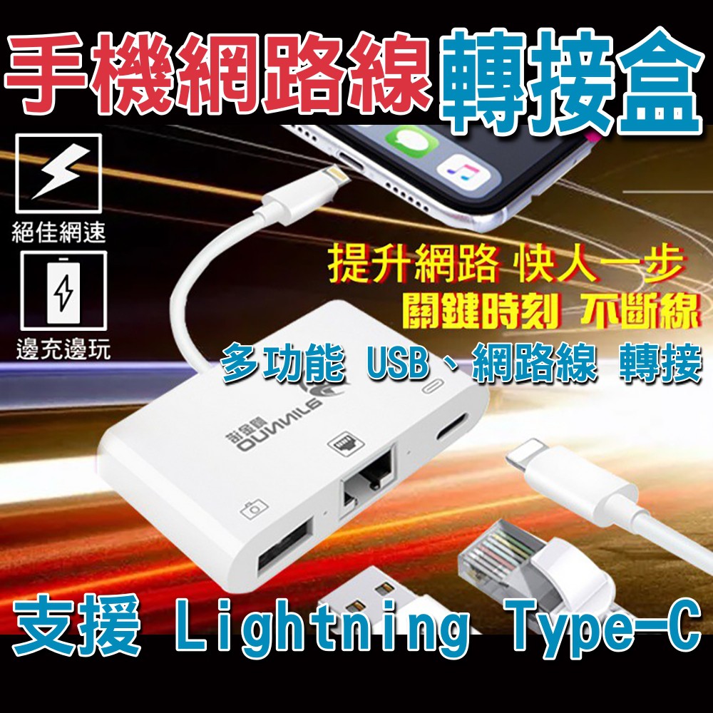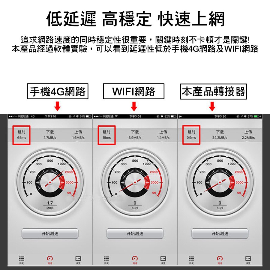 【直播遊戲不卡頓】 (手機網路線轉接盒) 蘋果 安卓 乙太網路 高速網路 有線網路 手機接有線網路h