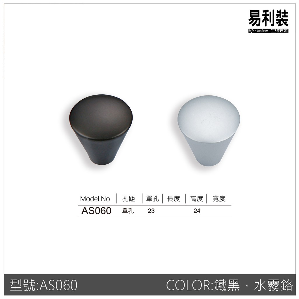 把手 S060 (單支) 櫥櫃 抽屜 門把 取手 門鈕 拉手 櫃子 雙孔 單孔 崁入式 工業風 鐵黑 易利裝生活五金