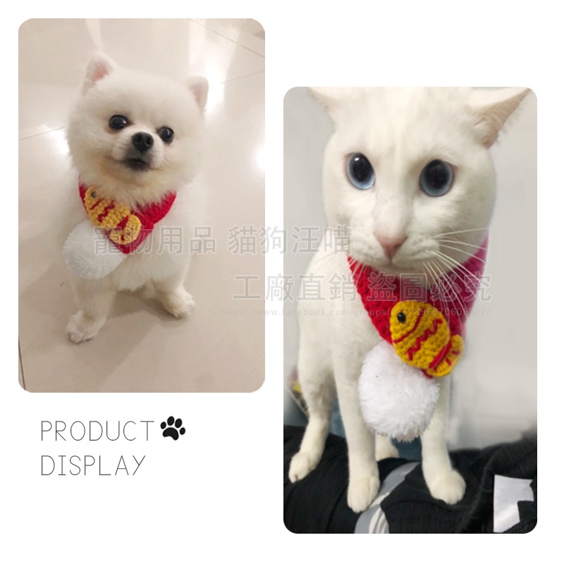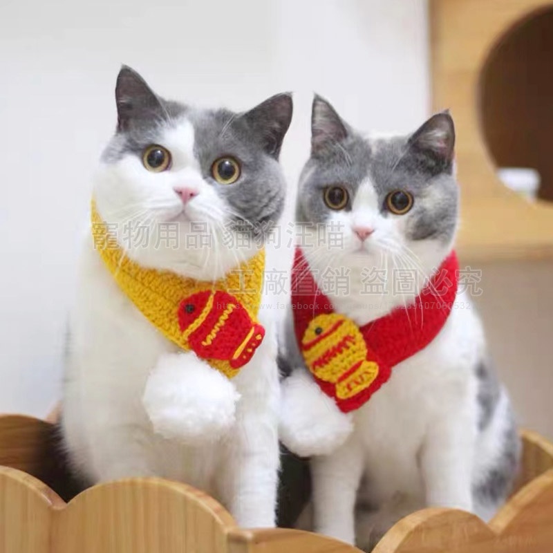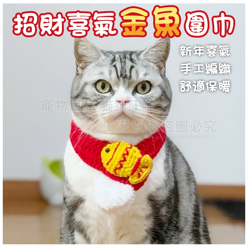 招財喜氣金魚圍巾 編織圍巾 新年圍巾 小熊圍巾 貓狗圍巾 寵物圍巾 貓咪圍脖 可調整項圈 金魚喜氣 針織加厚圍脖
