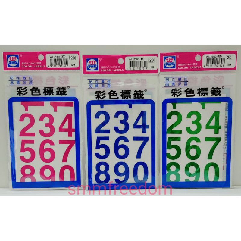文隆 彩色標籤 WL- 2060 紅、藍、綠 數字 大 0 1 2 3 4 5 6 7 8 9 華麗牌 數字標籤