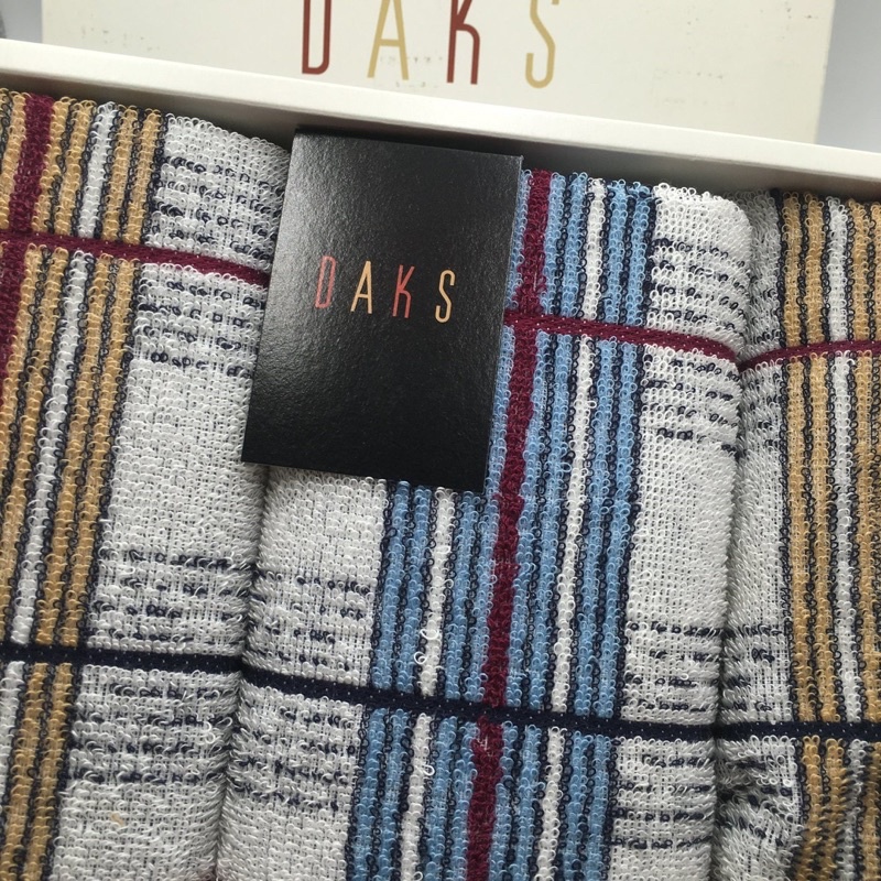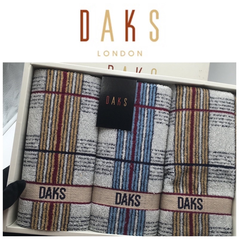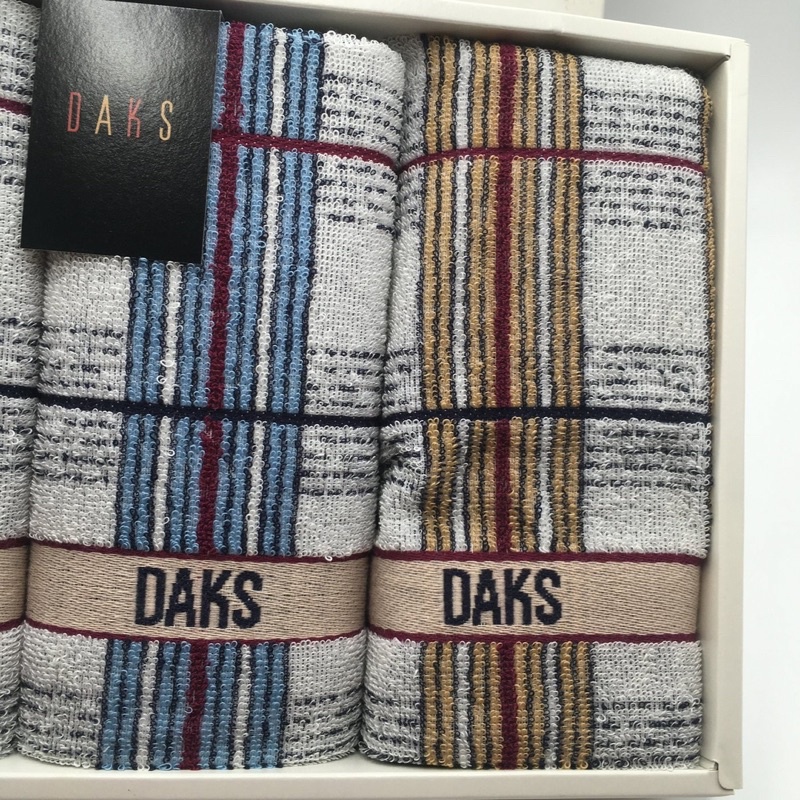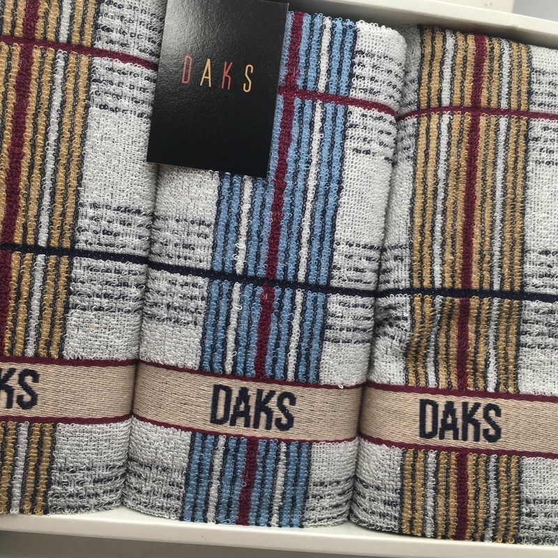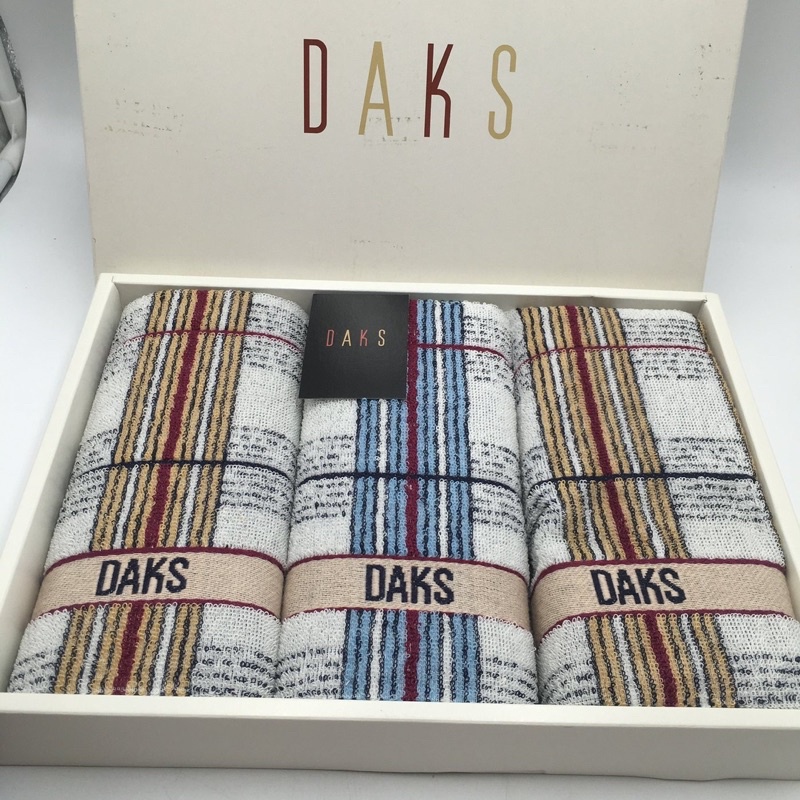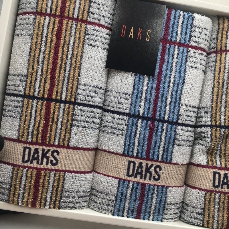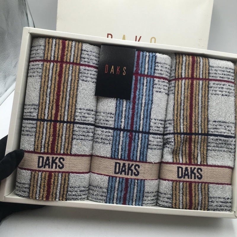 新古真品 ❤️未使用❤️DAKS 毛巾 方巾 直條 3件盒裝組 盒179