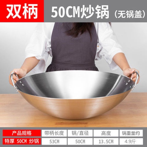 新品下殺 特大34-60cm特厚無磁不銹鋼炒鍋雙耳圓底爆炒鼎商用食堂農村大鍋