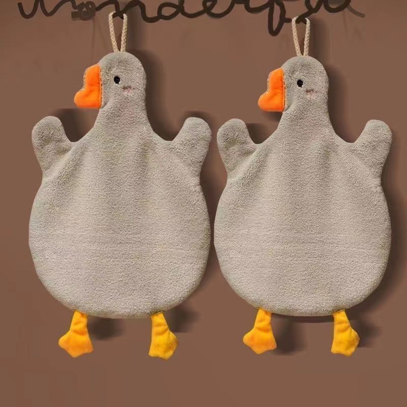 新品特價💕可愛動物大鵝珊瑚絨擦手巾掛式衛生間廚房吸水毛巾傢用加厚擦手帕