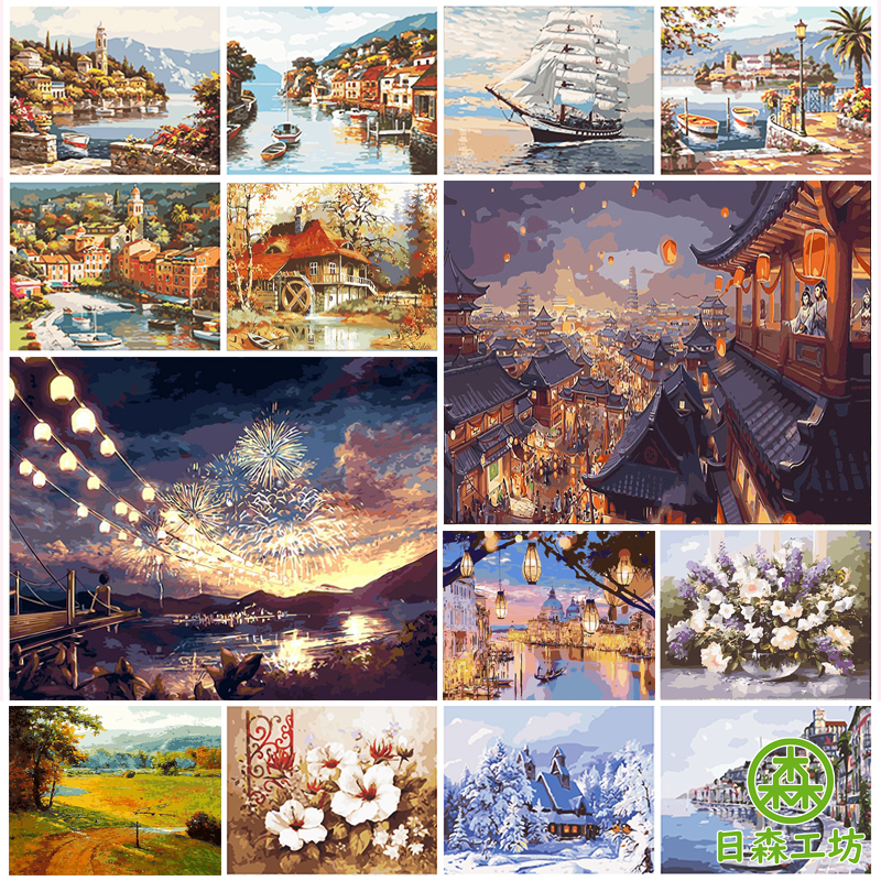 A系列【日森工坊】無框數字油畫 DIY油畫 40x50cm 客廳裝飾 風景 紓壓 繪圖 著色 無框油畫 隔日到貨