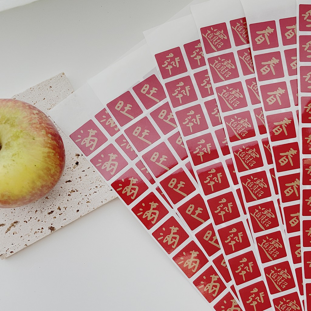 過年必備2X2cm 年貨貼 日進斗金 金榜題名 恭喜發財 萬事如意 入厝貼 春聯貼紙 開市開工 新年 水果貼 囍字 改運