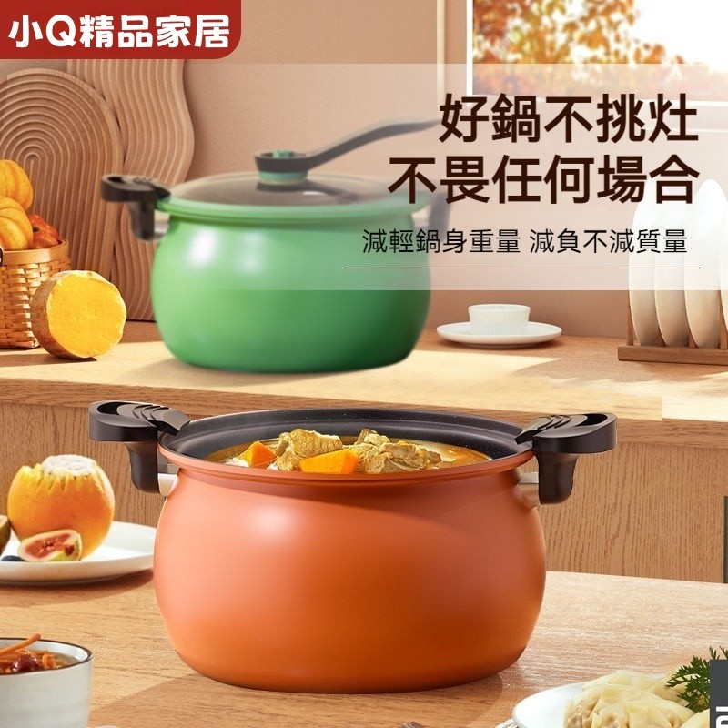 新款微壓鍋麥飯石湯鍋不粘鍋燉煮鍋電磁爐燃氣灶通用大容量壓力鍋