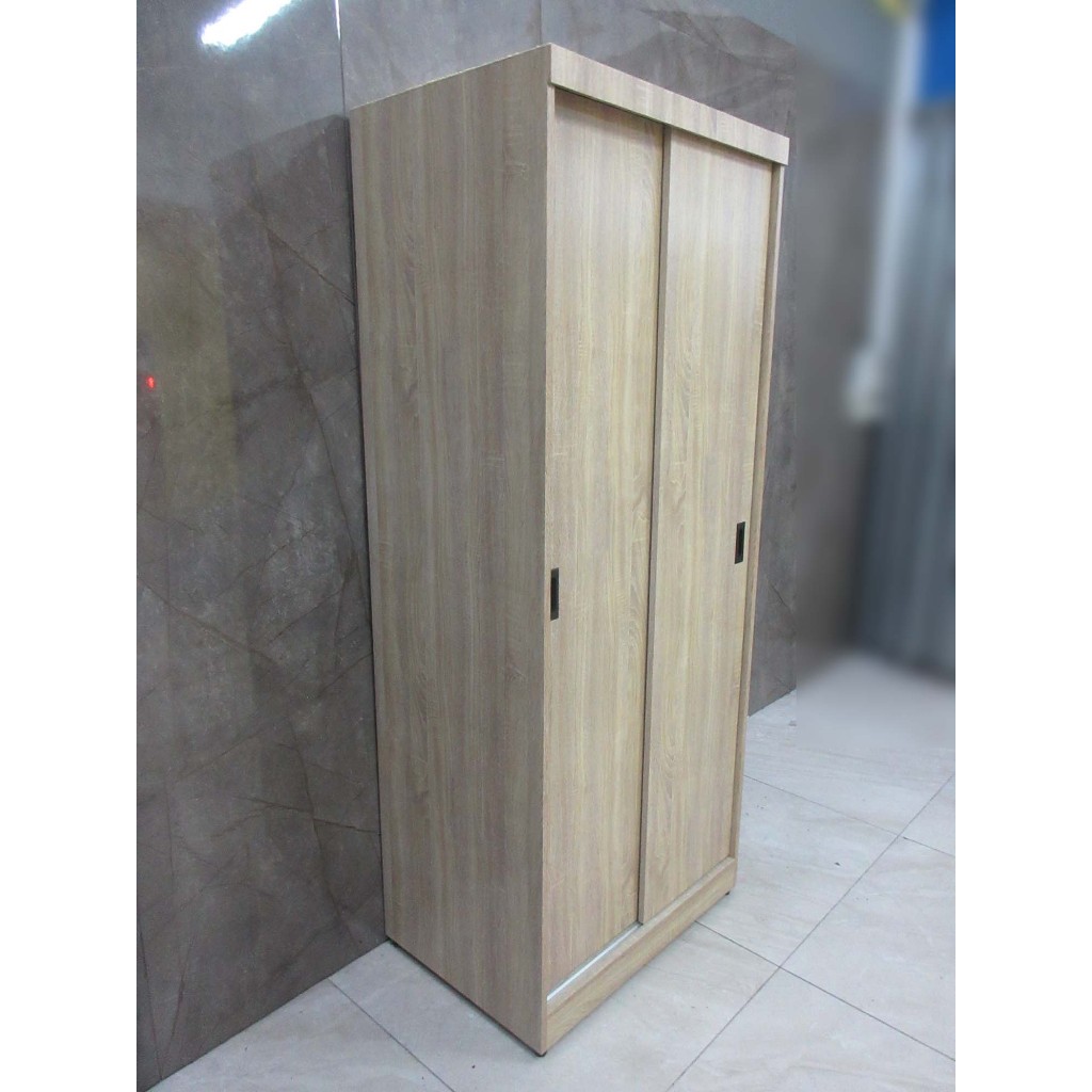 新竹二手傢俱◎百豐悅二手家具-庫存新品出清 梧桐色82公分兩門吊桿衣櫃 單人衣櫥 滑門衣櫃 台中2手家具 中壢2手傢俱
