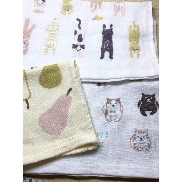日單《貓咪/橘貓/虎斑/黑貓/三花/梨子/水果》紗布 毛圈 小毛巾 童巾 方巾 純棉 輕薄易乾