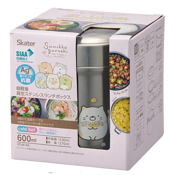 日本代購 skater 抗菌 真空二重構造不鏽鋼 保溫 保冷 飯盒 600ml STLB1AG