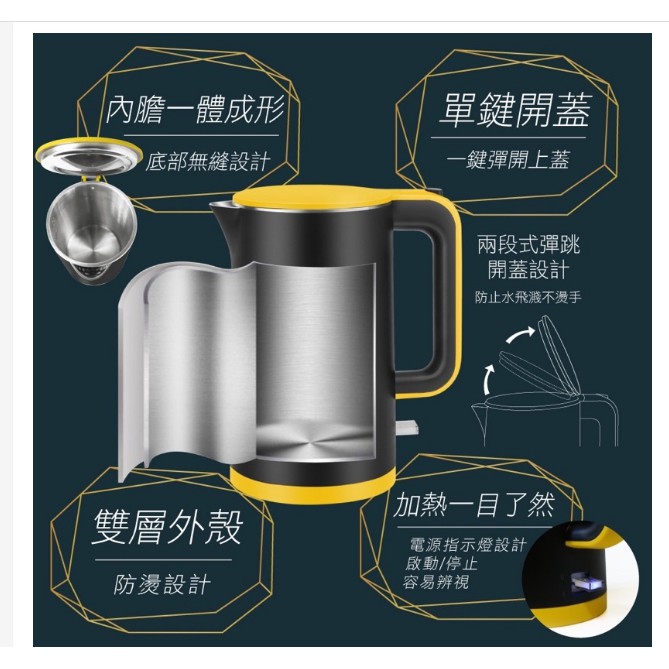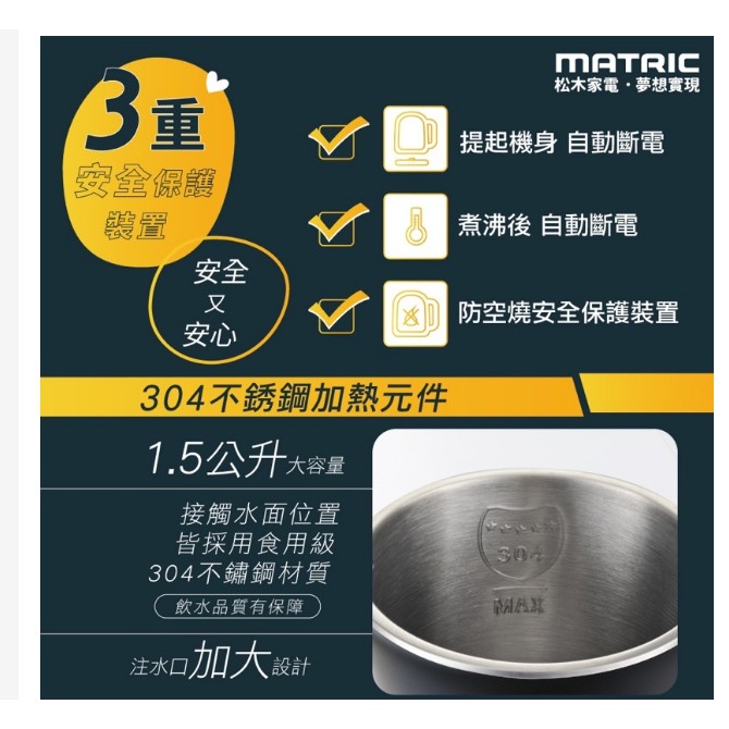 日本松木家電 1.5不鏽鋼雙層防燙快煮壺MG-KT1502 (英國STRIX溫控器)