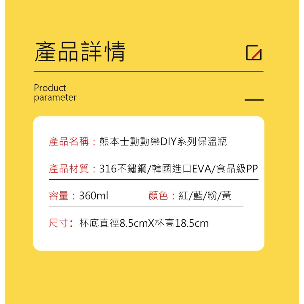 日本熊本士 動動樂 DIY系列 316不鏽鋼 360ml 保溫瓶(現貨) 兒童保溫杯 EVA杯套1杯2蓋 6小時保溫保冰