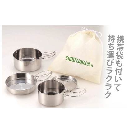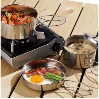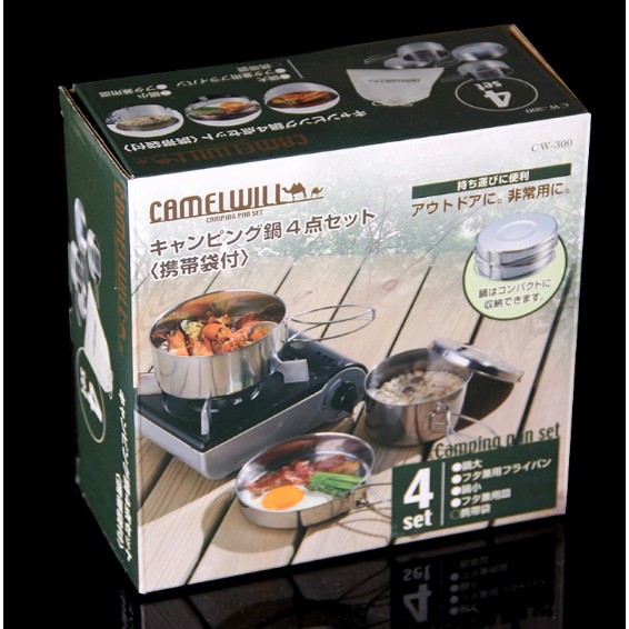 日本熱銷[便利鍋具四件組] 野營鍋4件套組 不鏽鋼鍋 煮飯 露營 野餐 烤肉必備