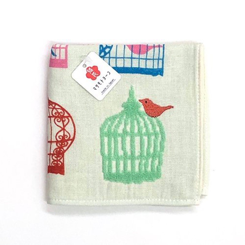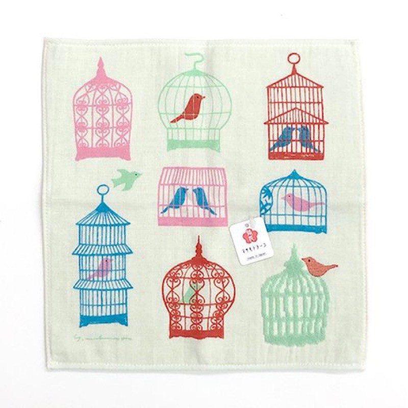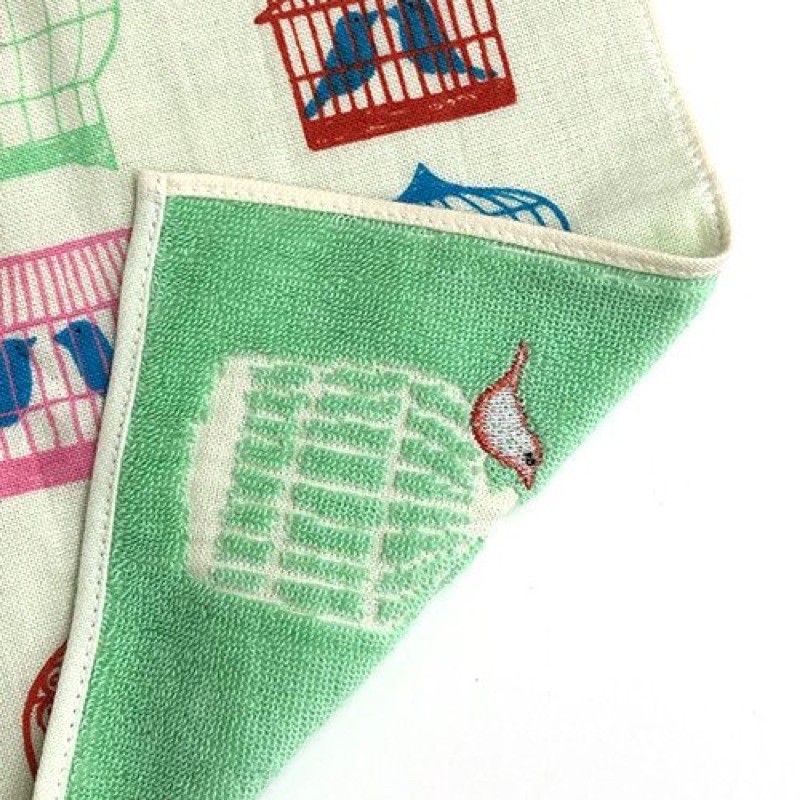 日本製 松本洋子 繪本家 紗布 棉質 鳥兒 鳥籠 貓咪 犬動物刺繡 方巾 手帕 洗臉巾 親膚柔軟 吸水快乾