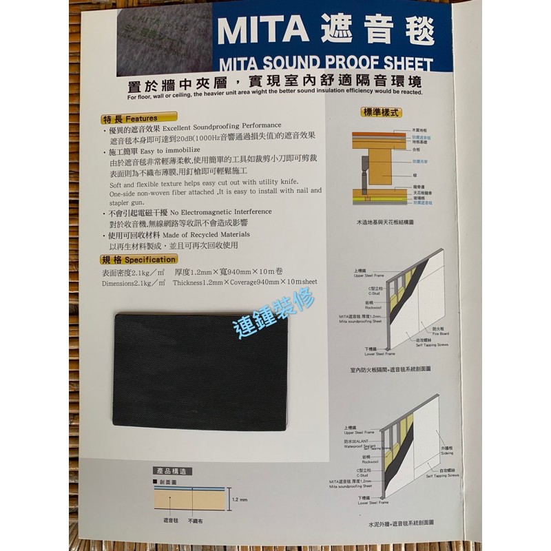 日本製 遮音毯 隔音氈 ✅宅配金額含稅附發票 軟質遮音 輕鋼架 輕隔間 遮音墊 MITA 建材 隔音