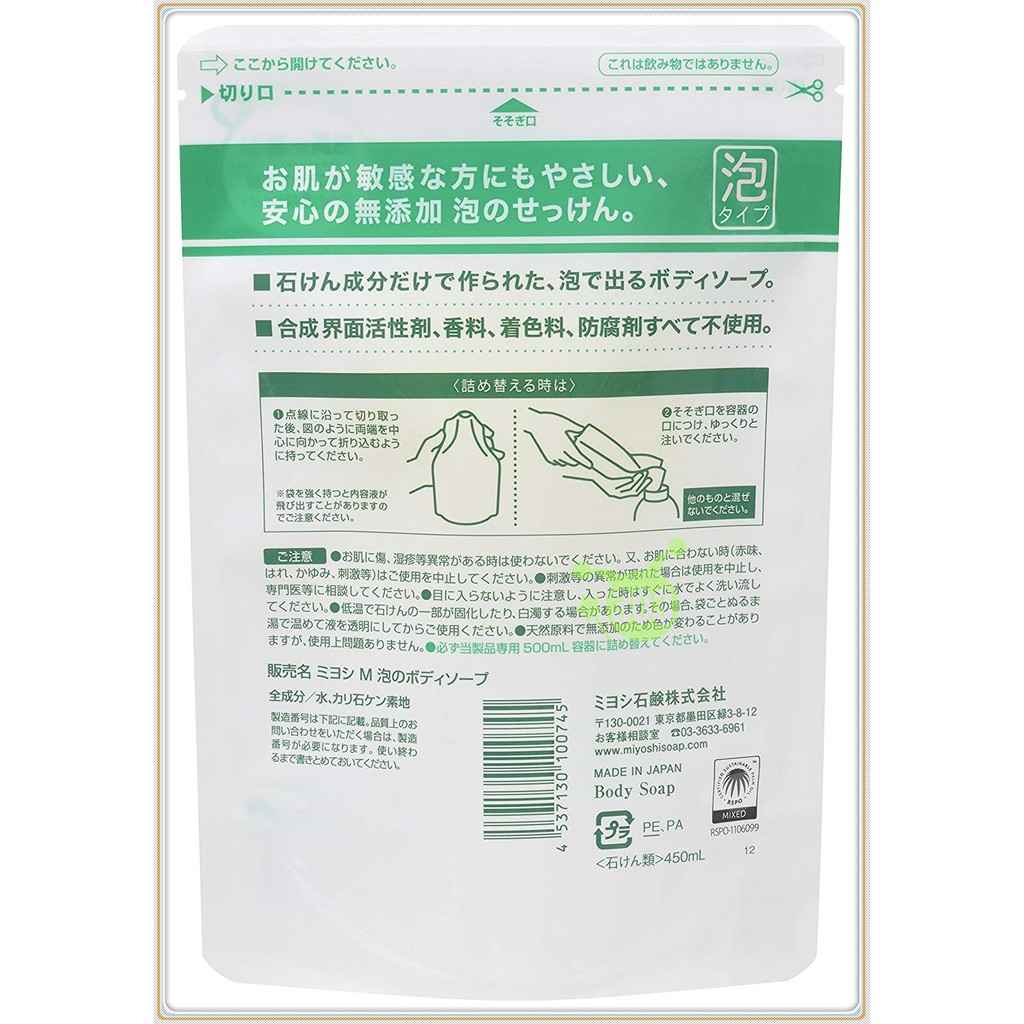 日本製MIYOSHI 無添加泡泡沐浴皂 (補充包)450ml (要搭配泡泡瓶使用) 4537130100745