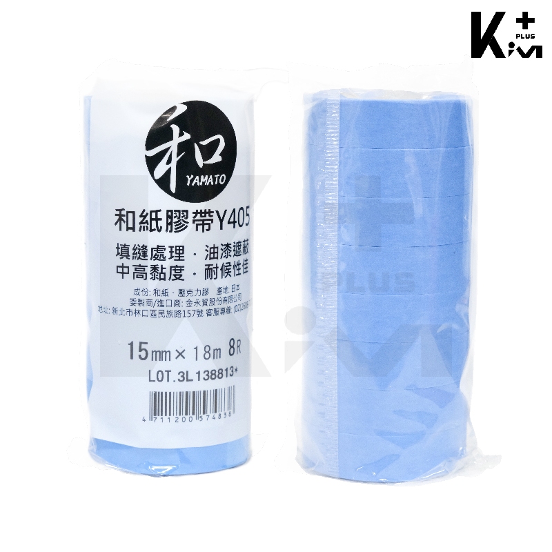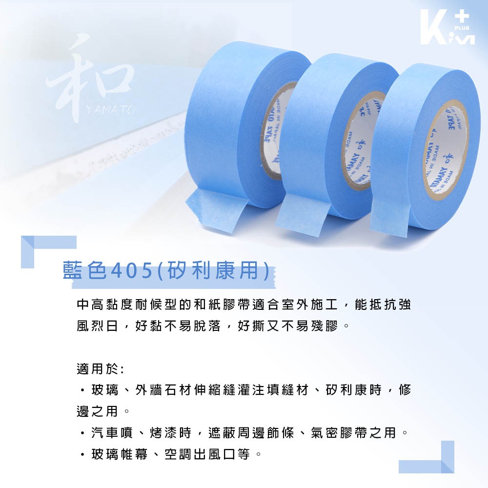 日本 和Yamato 和紙膠帶 (藍色Y405中高黏度) 18M 矽利康用 遮蔽膠帶【Kim Plus】