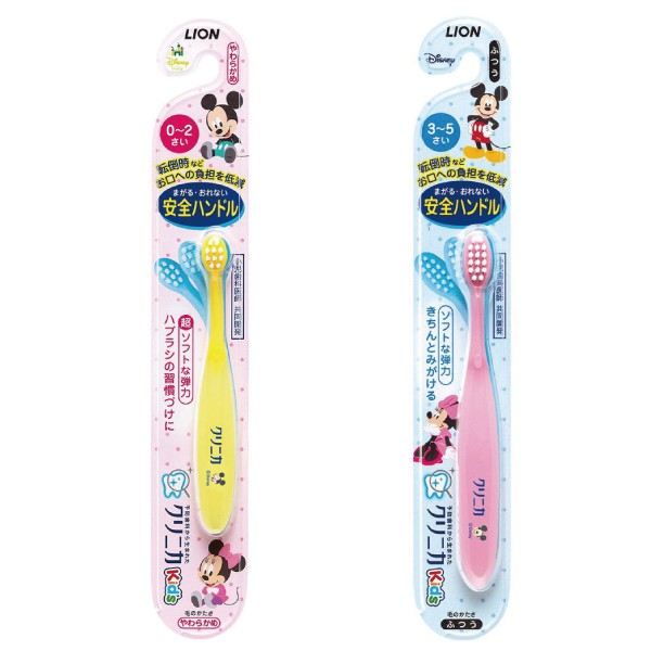 日本 LION 米奇彈力可彎曲兒童牙刷 (0~5歲) (顏色隨機出貨)【麗兒采家】