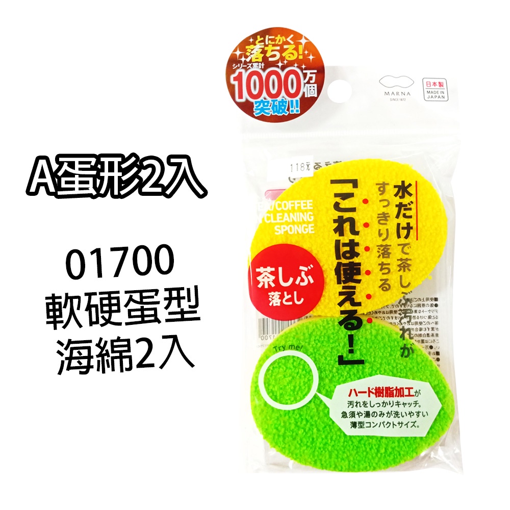 日本 MARNA 兩用軟硬分面菜瓜布 清潔布 抹布 蛋型 海綿 除垢 除漬 茶漬 水漬 水垢 茶垢 水龍頭清潔