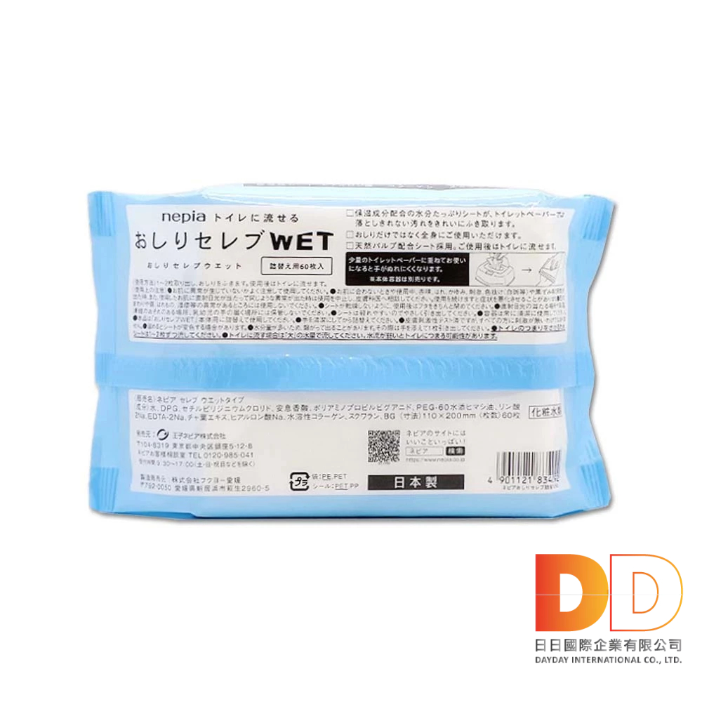 日本 Nepia 王子 柔膚滋潤型 可分解 抽取式 濕式衛生紙 補充包 60抽/袋 本品不含按壓式抽取盒 妮飄 王子濕紙