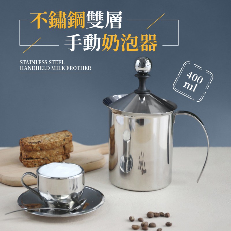 日本FUJI-GRACE 不鏽鋼雙層手動奶泡器400ml 免運 現貨 廠商直送