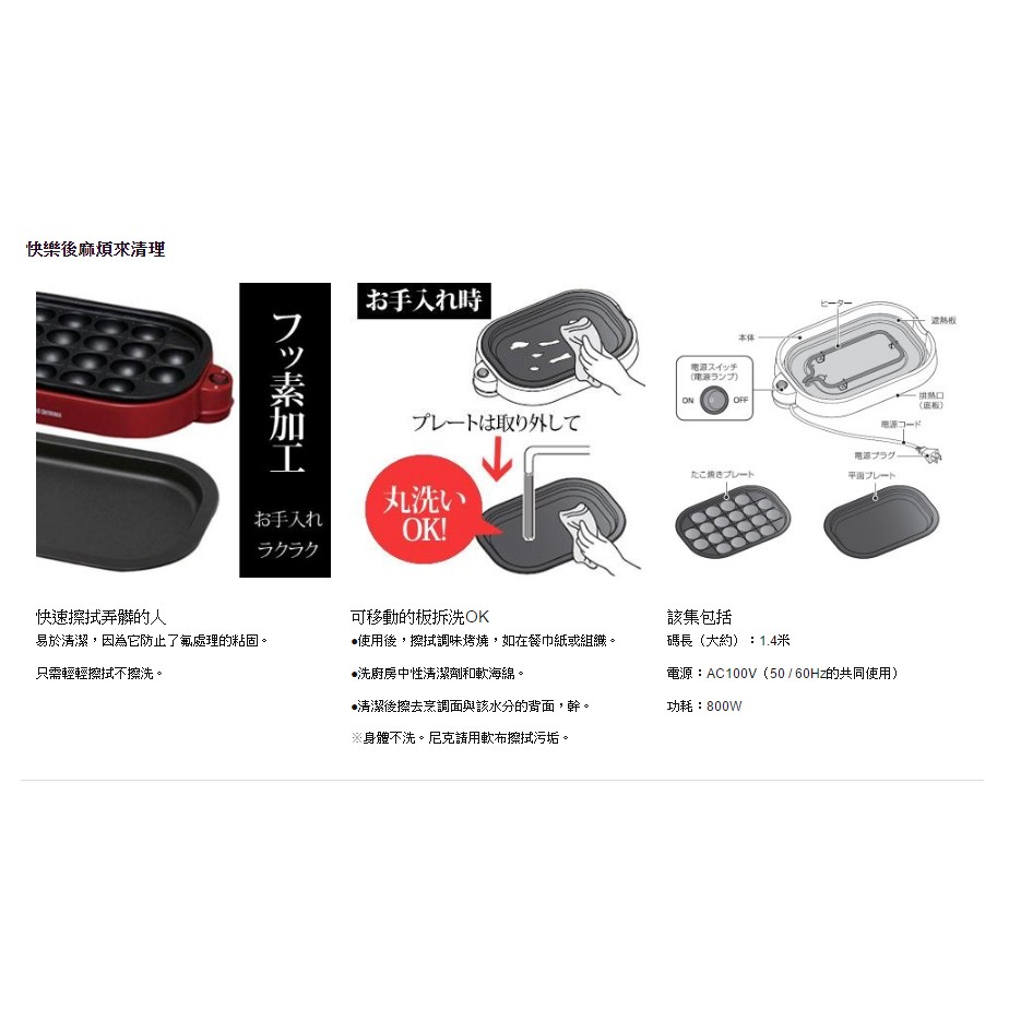 日本IRIS OHYAMA 2WAY ITY-20WA-R 章魚燒 鐵板燒 大阪燒 兩煎盤替換 現貨