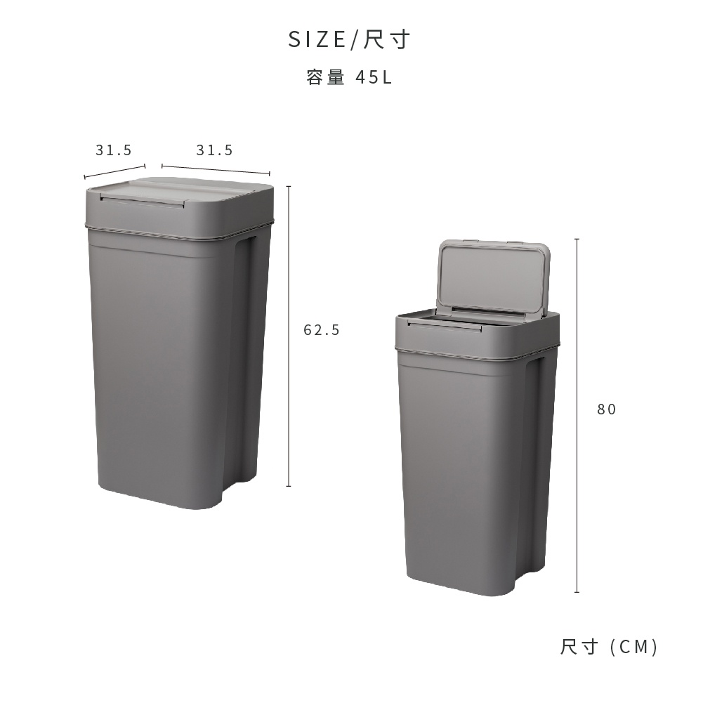 日本Like-it|Seals 多功能防臭按壓式垃圾桶/廚餘桶 45L