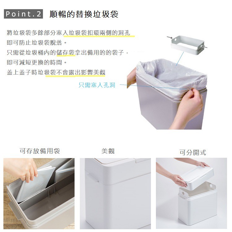 日本Like-it|Seals 桌上型防臭按壓式垃圾桶/廚餘桶 9.5L