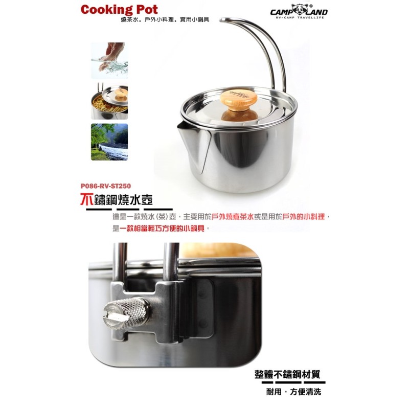 日野戶外【CAMP LAND】RV-ST250 304不鏽鋼燒水壺鍋 煮水 燒水 水壺 露營 野營 露營水壺 好清洗