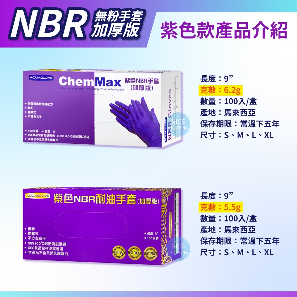 旭鑫 NBR chemmax 紫色 黑色 白色 藍色 保濕 加厚手套 無粉手套 一次性 手套 拋棄式手套【賴司購物】