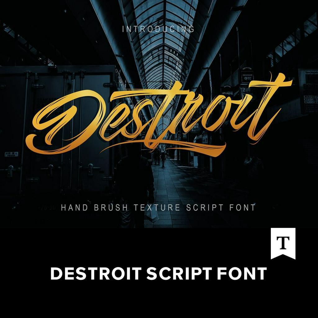 時尚炫酷筆刷手寫英文字體 Destroit Script Font.F2019051901