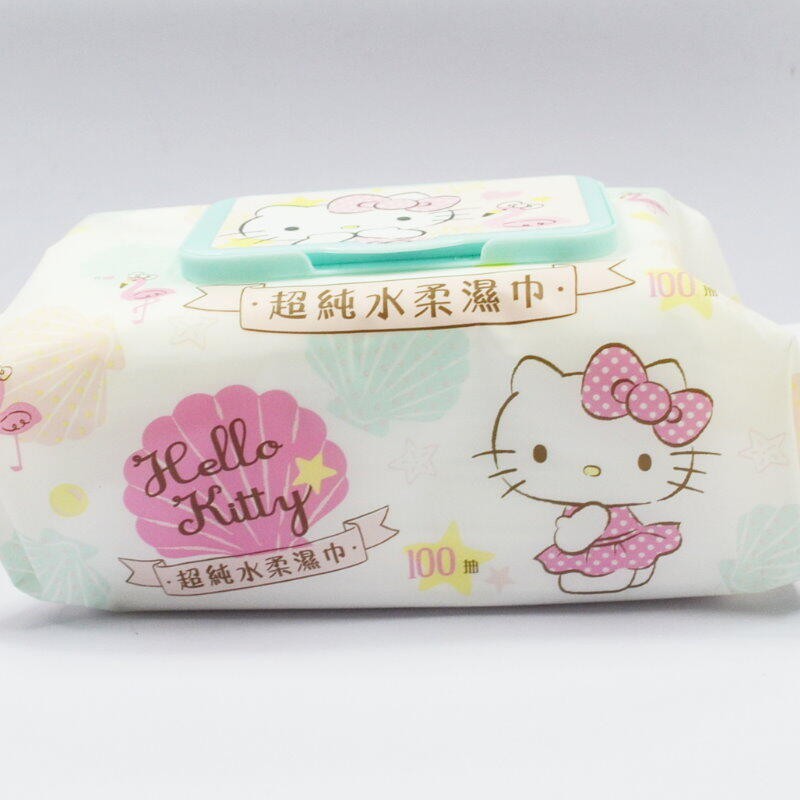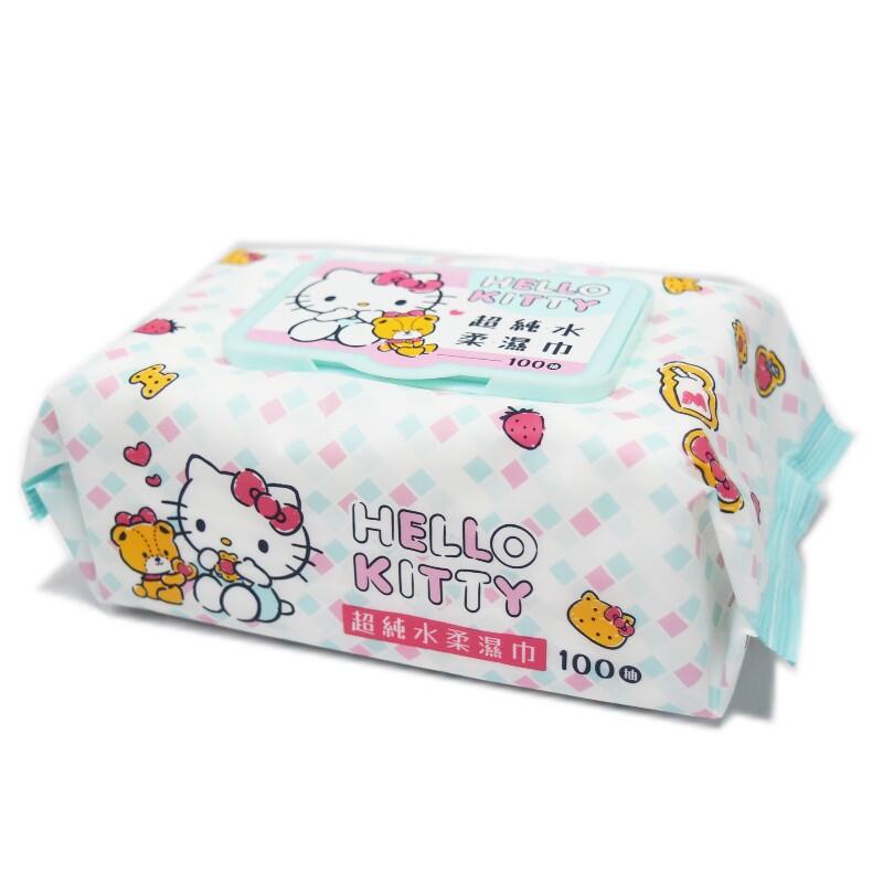有福氣*KITTY柔濕巾100抽 純水濕紙巾100入 掀蓋式 加厚清潔濕巾 不含酒精 螢光劑【GE220】