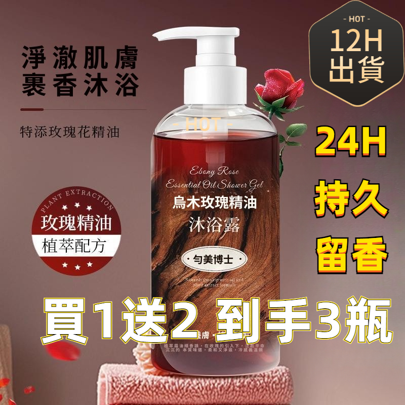 有貨在臺🚀99免運🚀勻美博士烏木玫瑰精油沐浴露400ml滋潤保濕沐浴油持久留香沐浴露