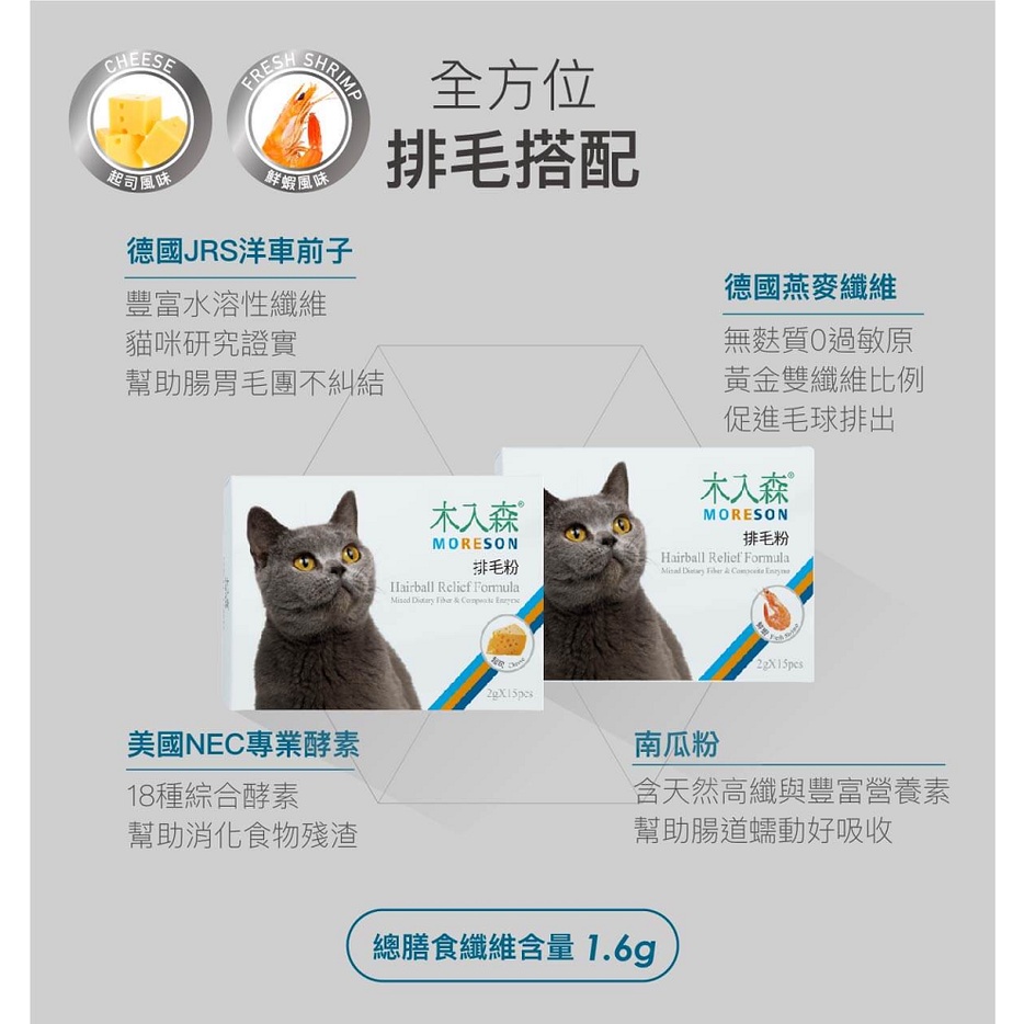 木入森 貓咪排毛粉【授權販售】15包/30包 貓草/鮮蝦/起司 溫和排毛 排毛粉 化毛 萌寵派對