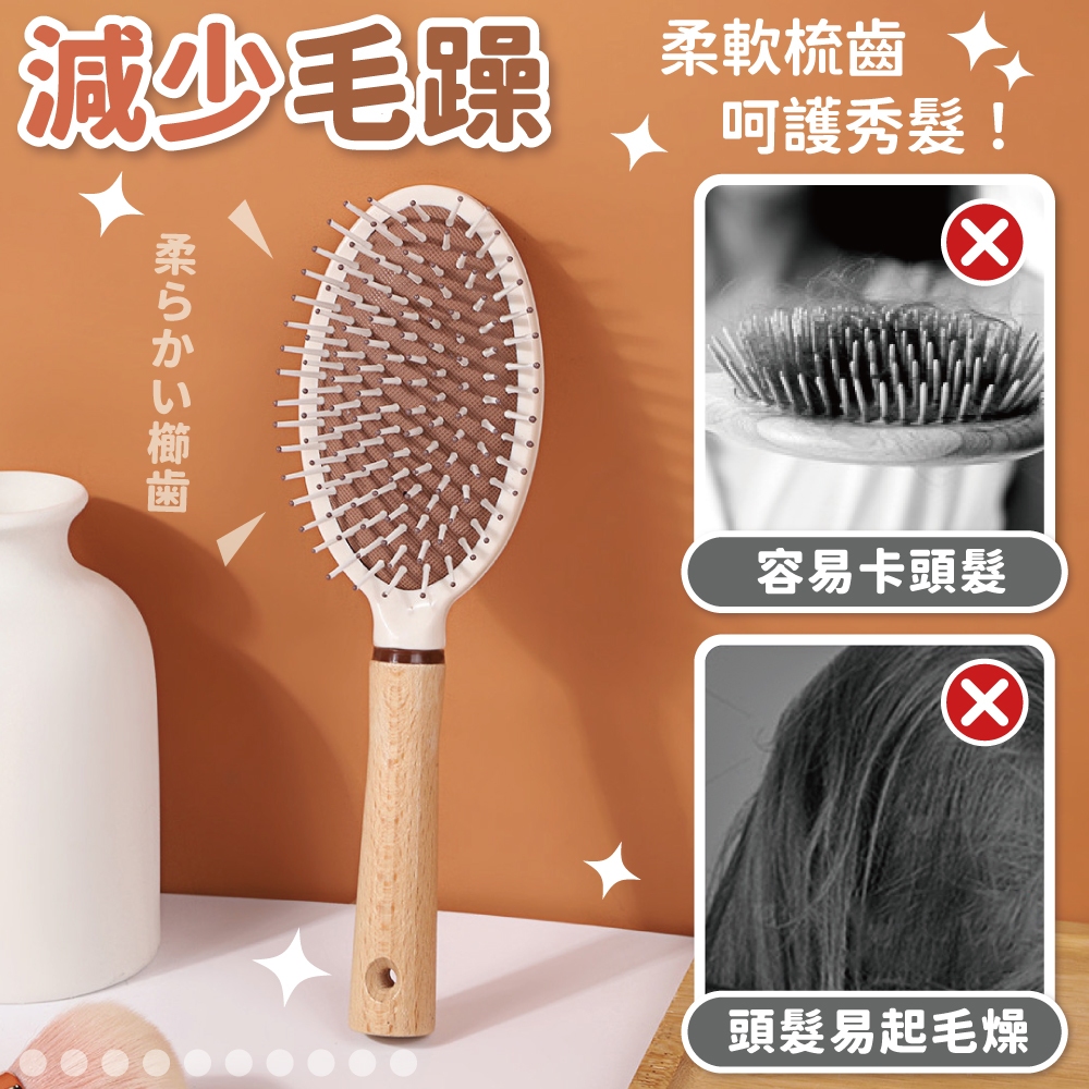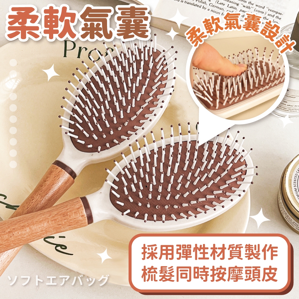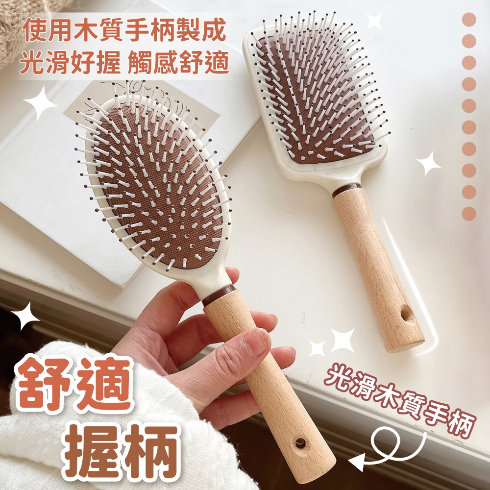 木柄氣墊梳 氣墊按摩梳 木質氣墊梳 梳子 氣墊梳 按摩梳 氣囊梳 梳頭髮 木柄氣囊梳【小麥購物】【G711】