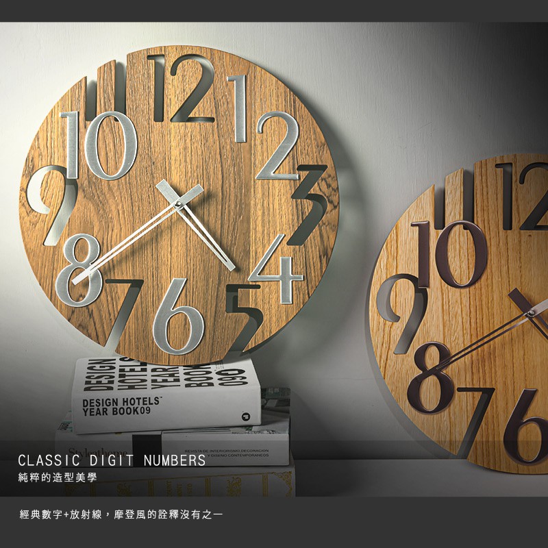 木質紋理壁掛式時鐘(兩色) dayneeds 掛鐘 大鐘面 時鐘 金屬指針 數字時鐘 靜音掃秒