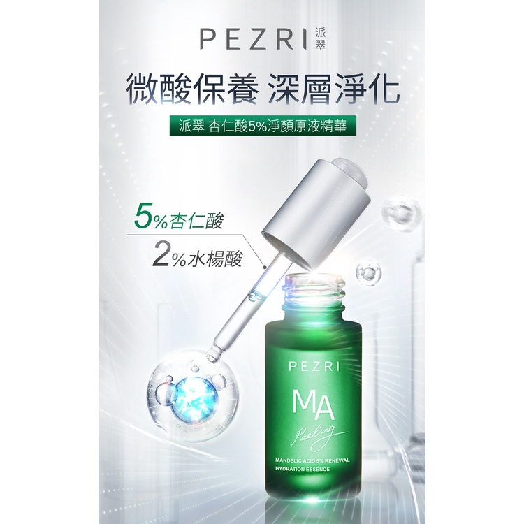 【PEZRI派翠】杏仁酸5%淨顏原液精華15ml【全新正貨:2027.09】雙酸天后│杏仁酸及水楊酸│微酸保養│深層淨化