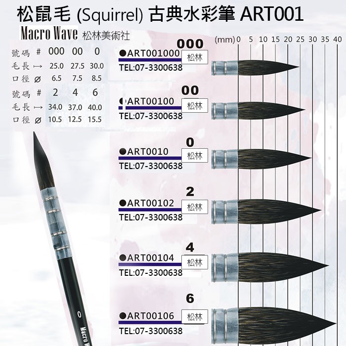 松林 馬可威 松鼠毛古典水彩筆 ART001 squirrel brush 圓筆 macro