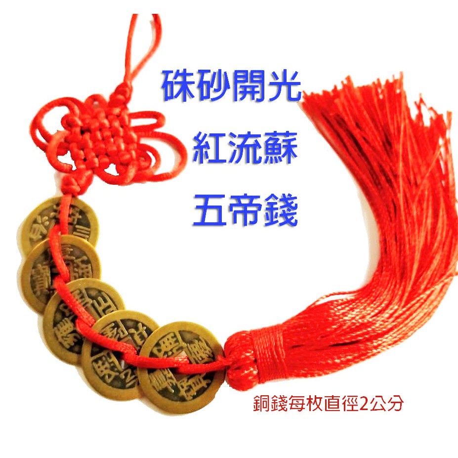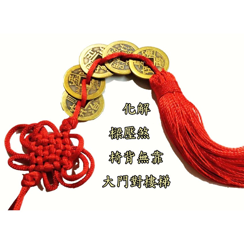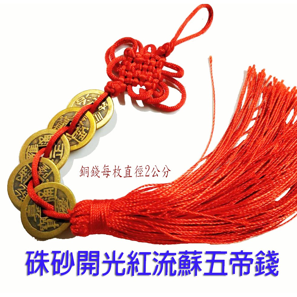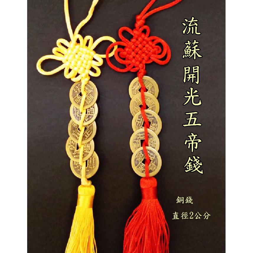 林老師開運坊~五帝錢直徑2公分一串(黃.紅.流蘇) ~ 催財.檔外煞.樑壓煞.玄武空煞(椅背無靠)開光i
