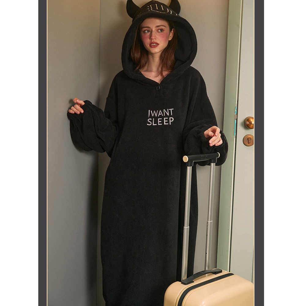 果殼同款睡袍長款睡衣2025新款秋冬睡衣女小惡魔加大加肥家居服冬【Jsna皇后】