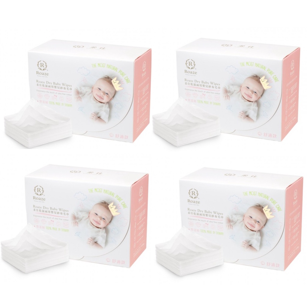 柔仕 Roaze 嬰兒紗布毛巾(160片/盒)X4盒【金龜車】
