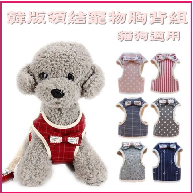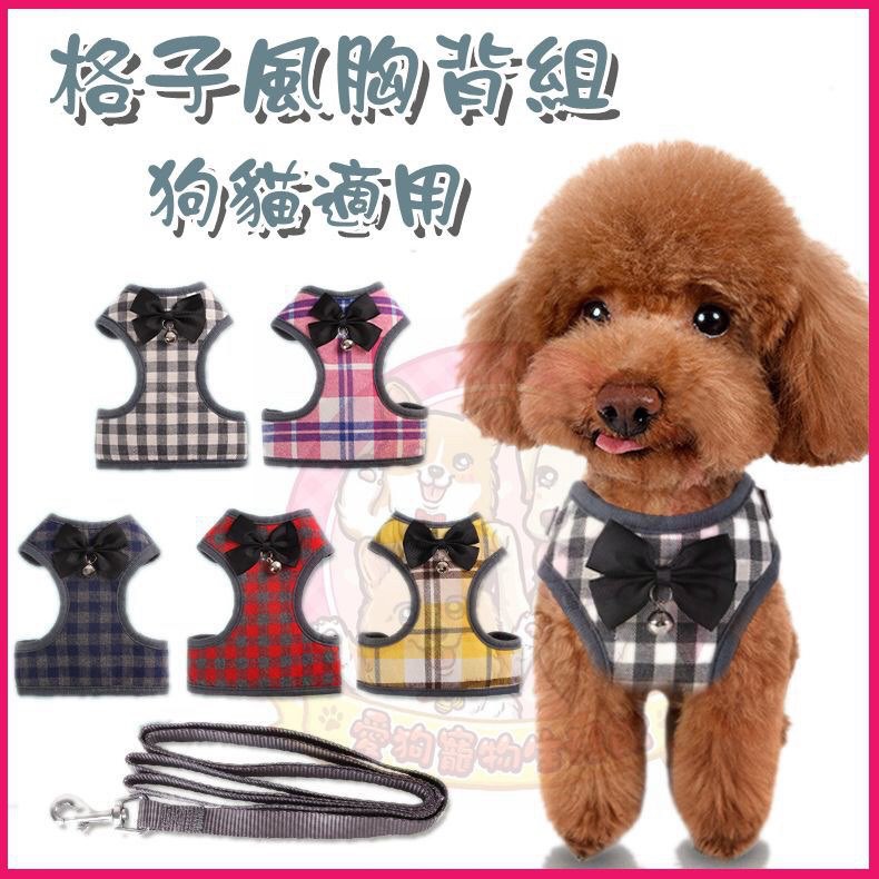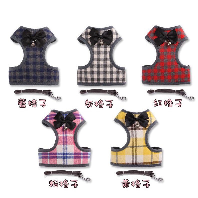 格子風 韓版領結 寵物牽繩胸背組 (S/M/L)🐶狗胸帶 狗胸背 寵物牽引繩 貓胸背