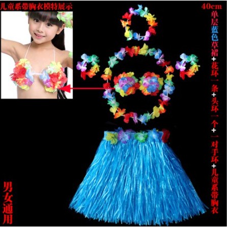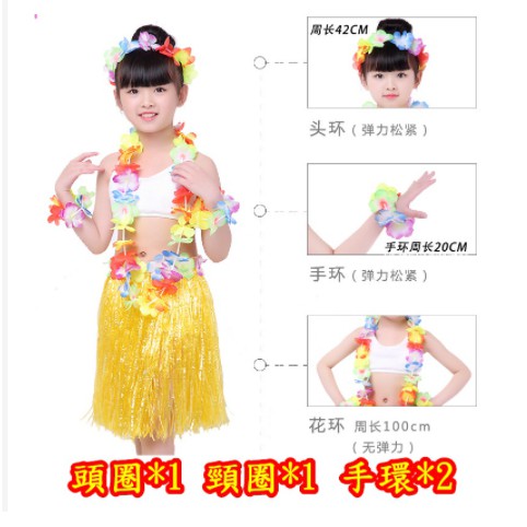 草裙花環花胸衣 夏威夷套組 派對舞蹈造型 四件組夏日風格派對小物 夏威夷主題佈置必備 活動穿搭推薦 熱賣造型套組 夏日風