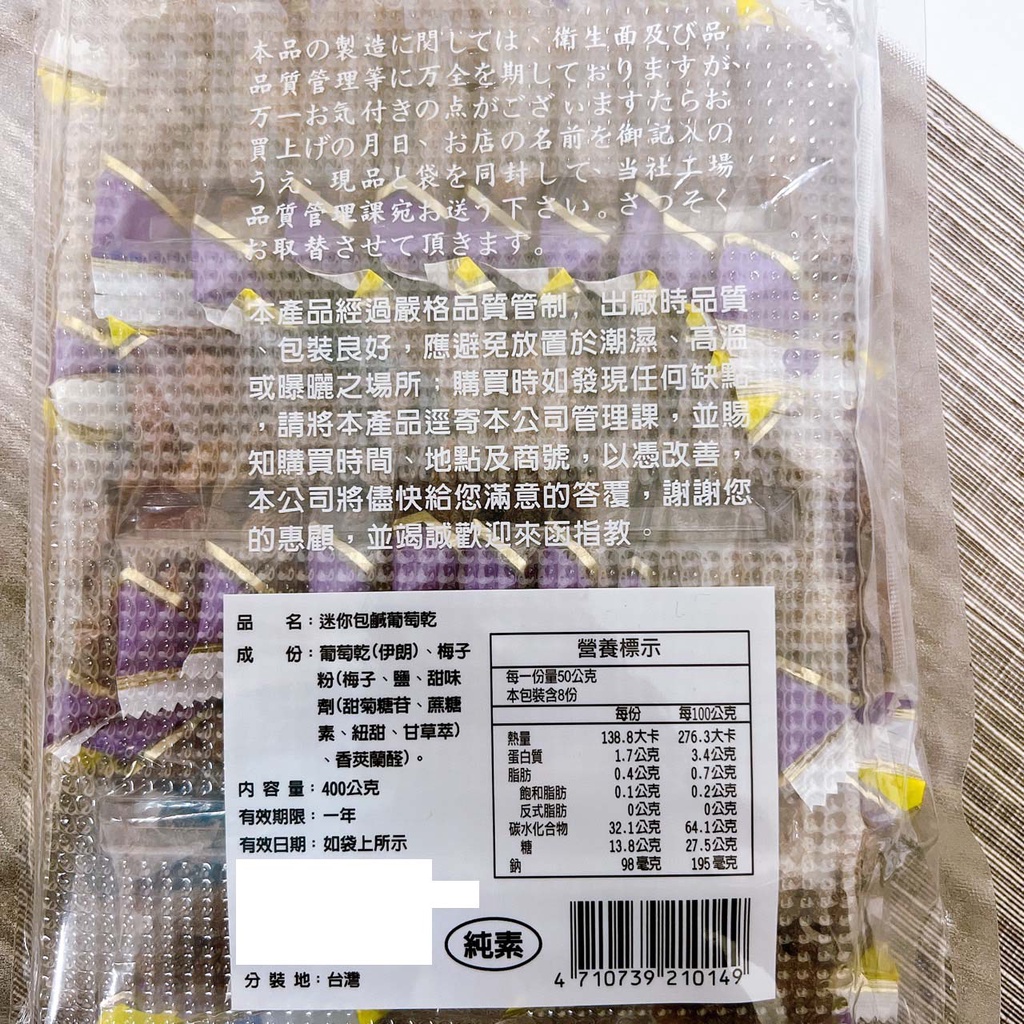 森吉小舖 富勝 御之味 梅子梅粉 鹹葡萄乾(迷你包)400g 約30包 古早味 迷你包鹹葡萄乾 純素 御の味