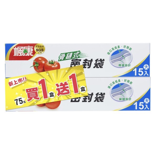 楓康-骨鏈式夾鏈密封袋【大】買一送一